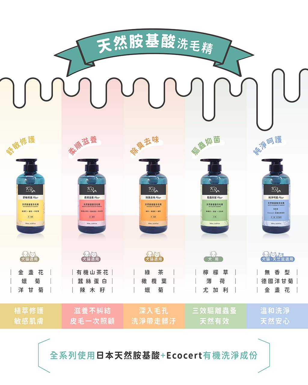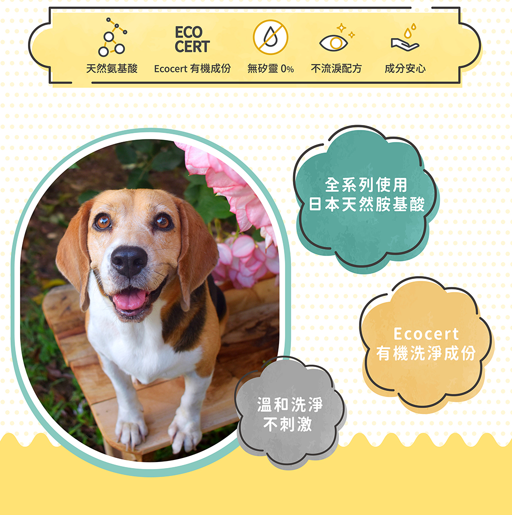 •天然胺基酸+Ecocert有機洗淨成份,洗後舒緩不抓抓