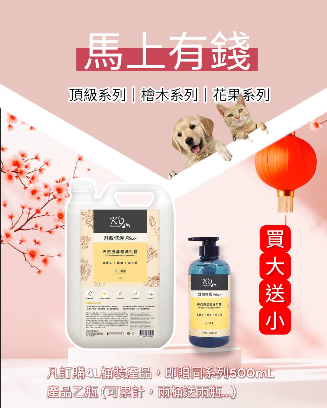 凡訂購K9花果系列洗毛精4L桶裝產品(