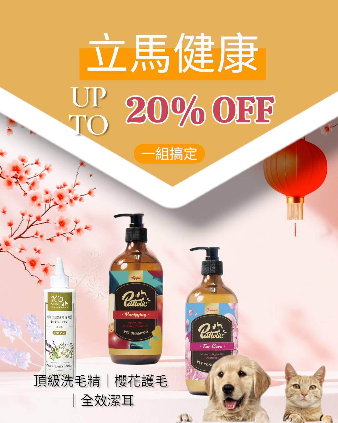 蜂蜜蛋白洗毛精+櫻花護毛+全效潔耳液(犬貓用)