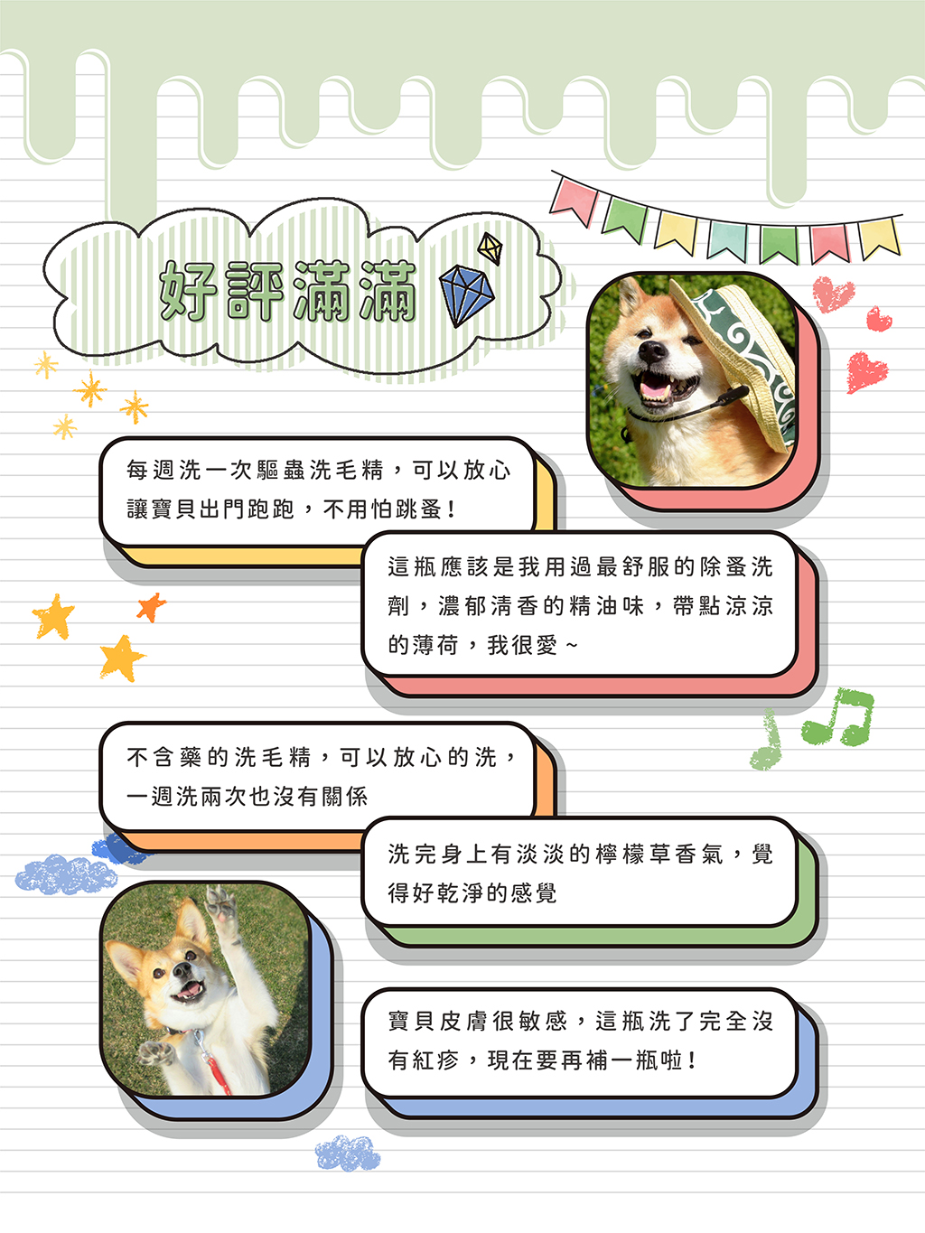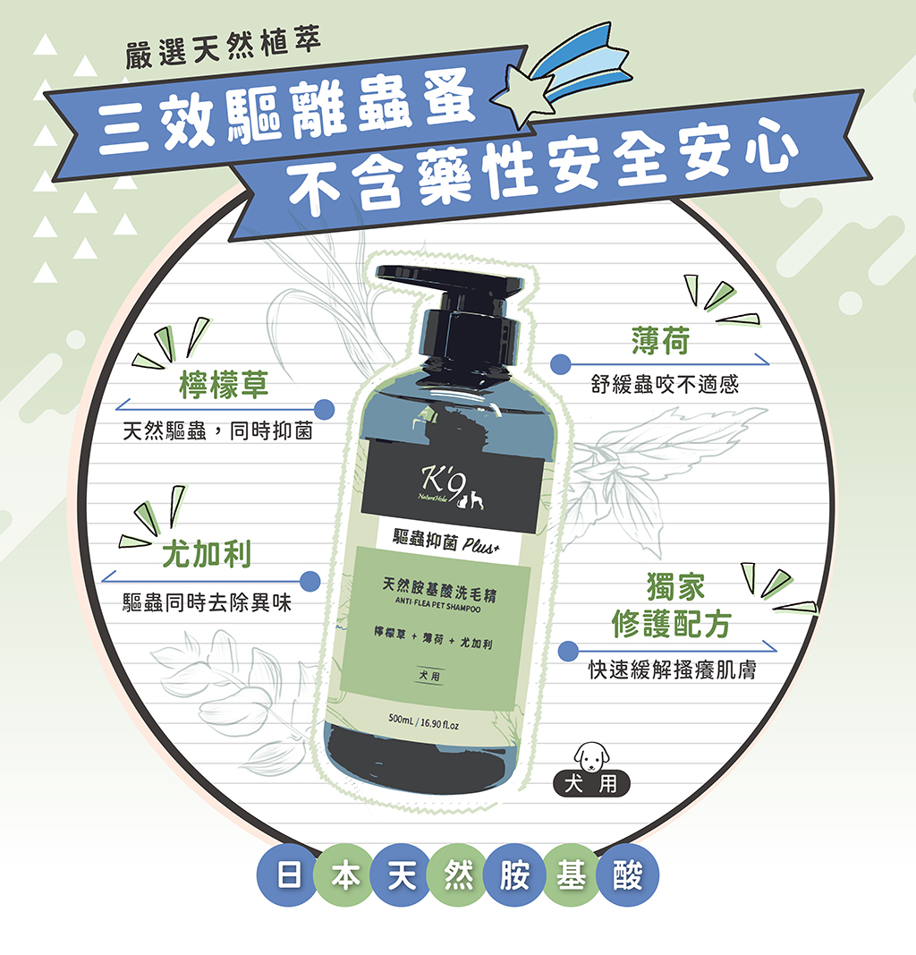 •檸檬草 + 薄荷 + 尤加利植萃精華,三效驅離蟲蚤天然有效,不含藥性不刺激