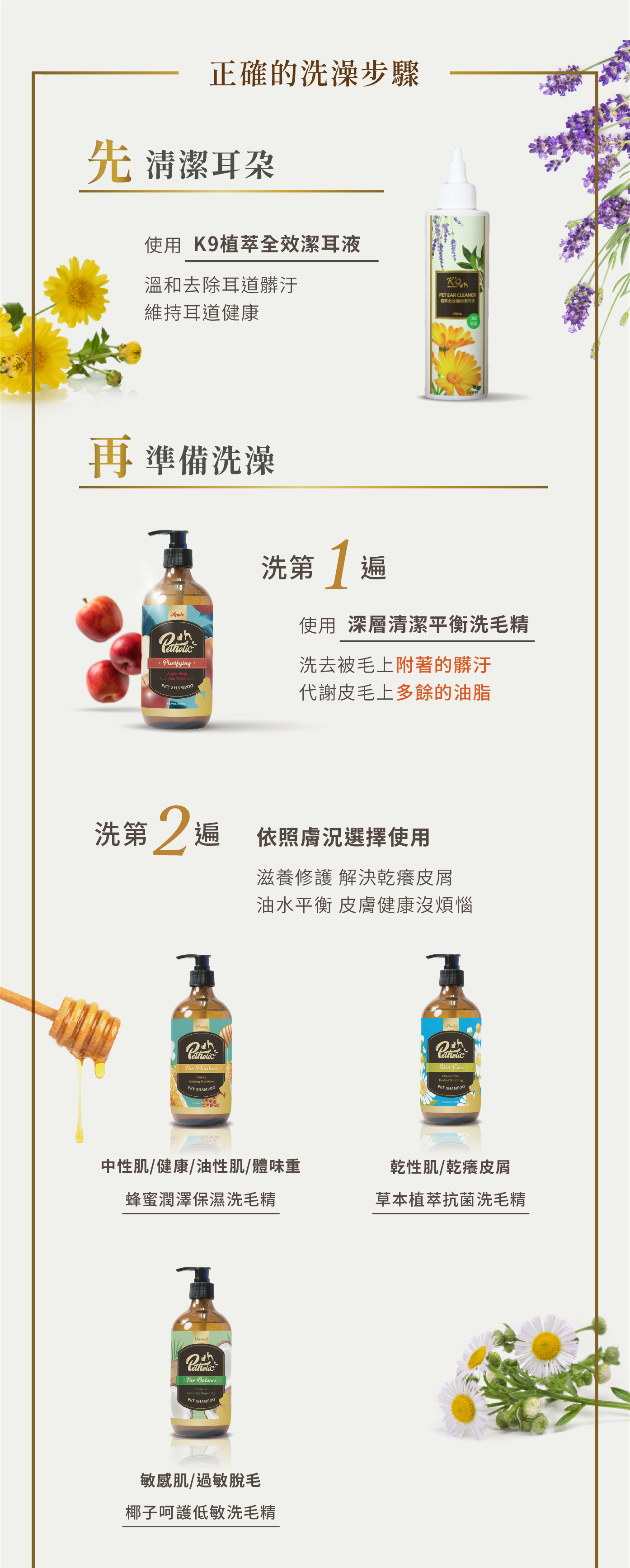 建議搭配 │PetHolic│頂級植萃系列洗毛精 再進行第二遍清潔使用,油水平衡達到最佳效果